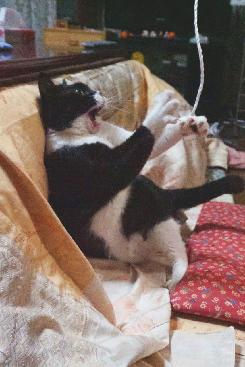 穏やかな性格ですが、遊ぶときは爪をむき出しにして遊びます。