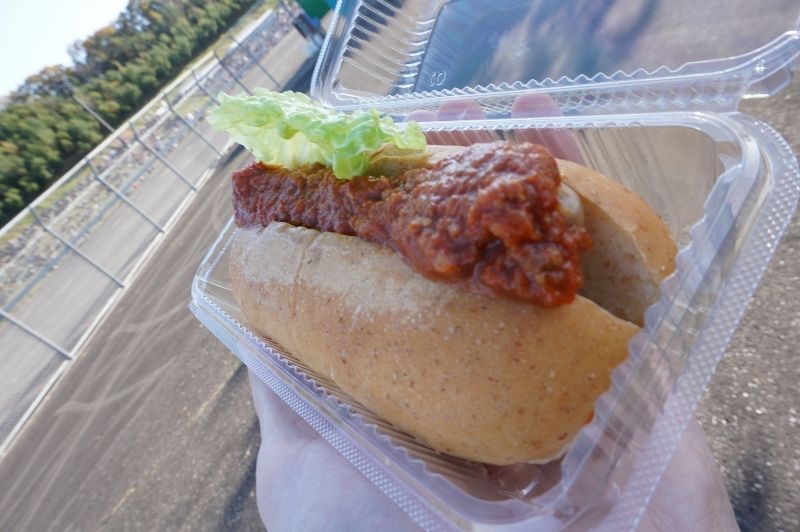 もてぎに行くと楽しみなのが、このチリソースホットドック。ピリ辛だけど、辛いだけじゃないソースが最高です。