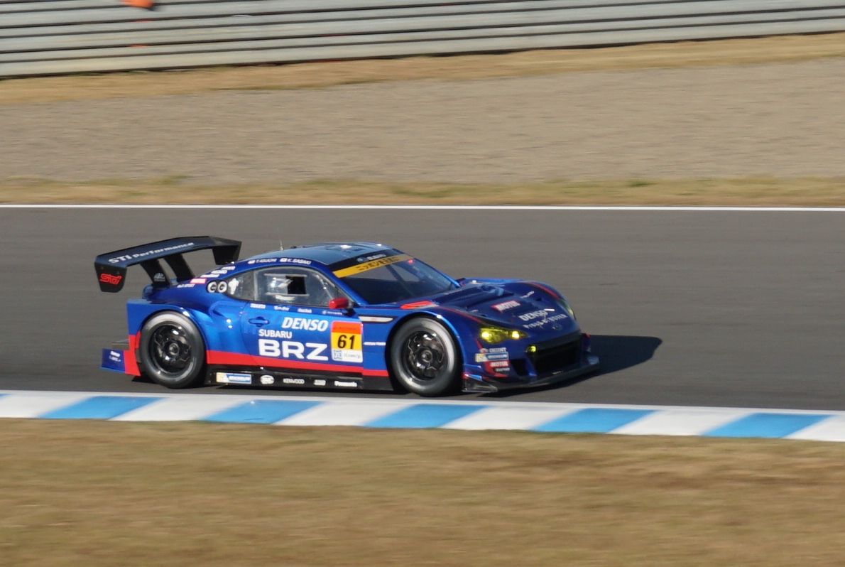 No.61 SUBARU BRZ GT300クラスのマシンはGT500クラスとはスピードが違うので写真は比較的撮りやすかったですが、何故かBRZはピントが合いづらかったですね。カラーリングのせい?マシンによってAFの効き方が違うなんて事あるんですかね。