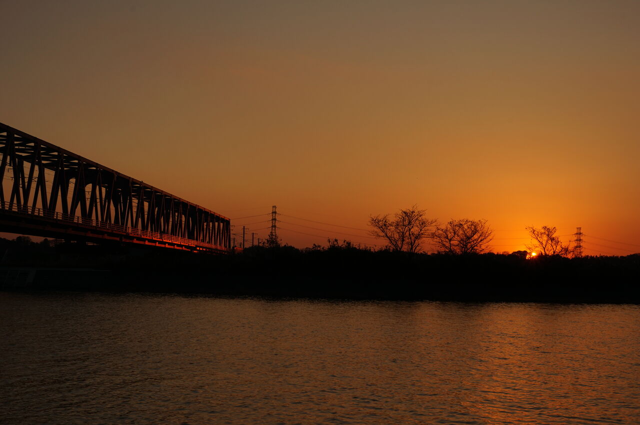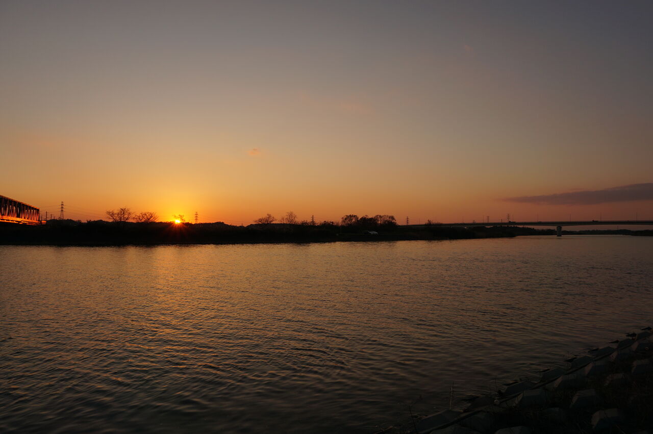 そこで買い物を済ませたら一旦家に帰ることにして、その前にちょっと散歩。近くに河川敷があるので、30分ほど沈む夕日を眺めたり、写真に収めたりしてきました。