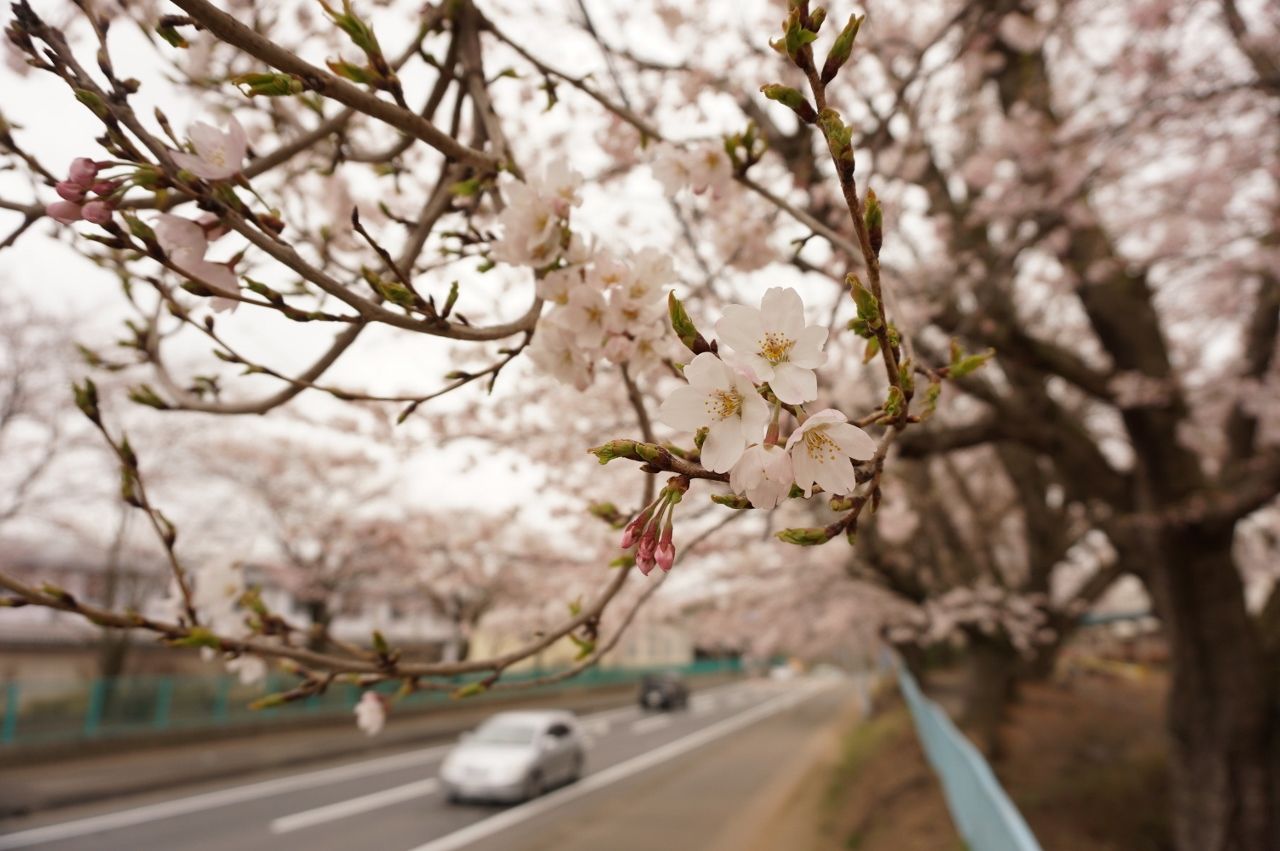 中学校の道路沿いに咲いていた桜です。満開まであと少し。