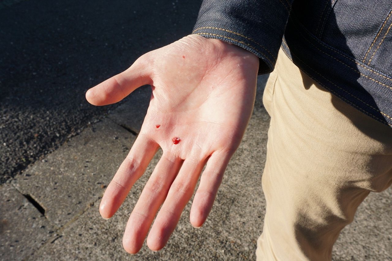 とっさに出した手は皮が剥け、