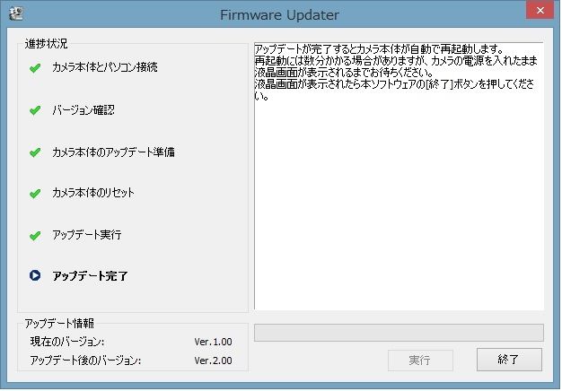 「ボディー: ILCE-6000 Ver.2.00」がアップデートに成功した証です。