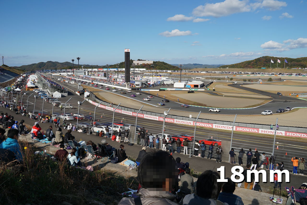 レース開始直前に、異なる倍率で撮影してみました。観戦場所はビクトリーコーナー前の自由席中段です。