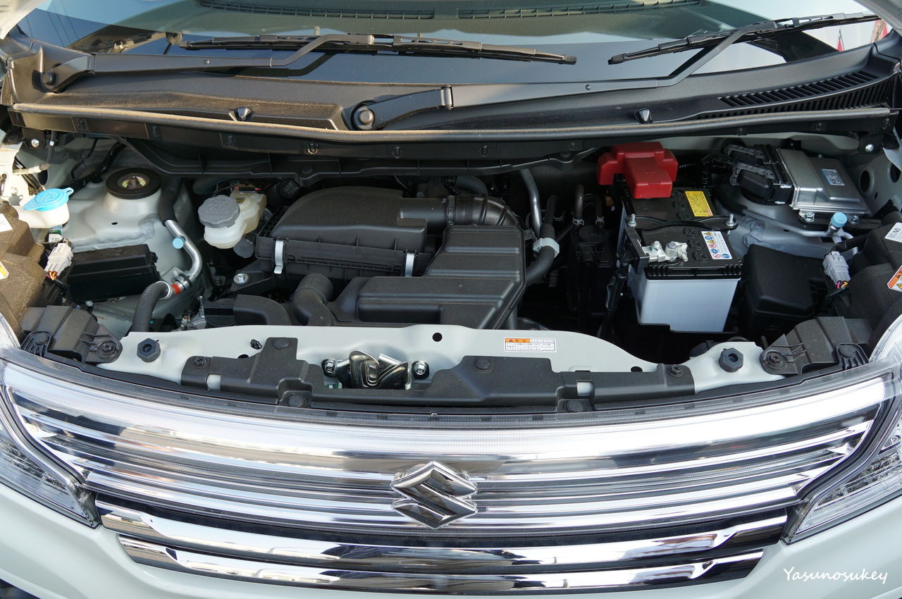 スペーシアカスタムを始め、ハイブリットシステムを搭載した車にはエンジンアシストのためのモーターをまわすバッテリーと、ハイブリットシステムの作動、エンジンの始動に使う補機バッテリーの二つが搭載されています。