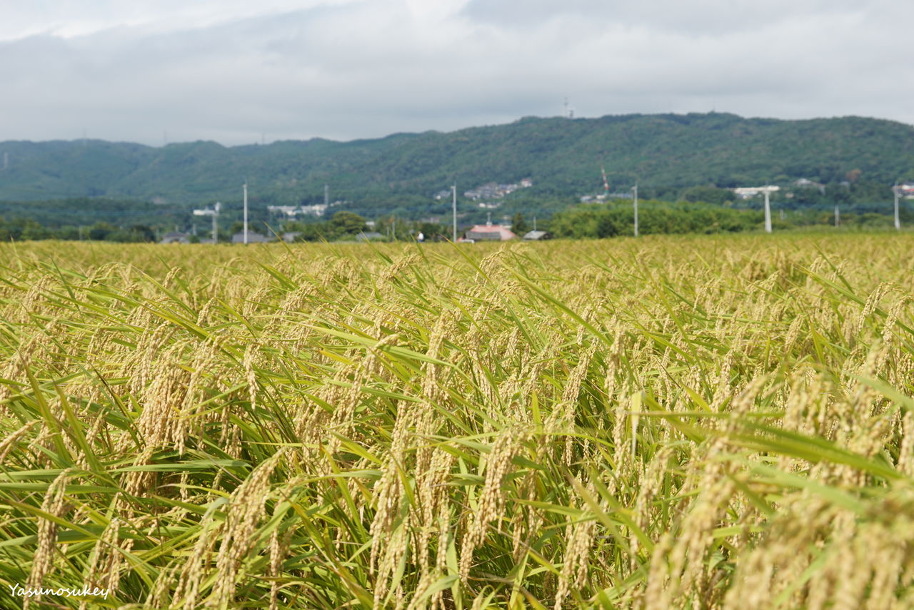 9月8日、茨城県北部。稲穂が育ち、田んぼの色が変わってきています。