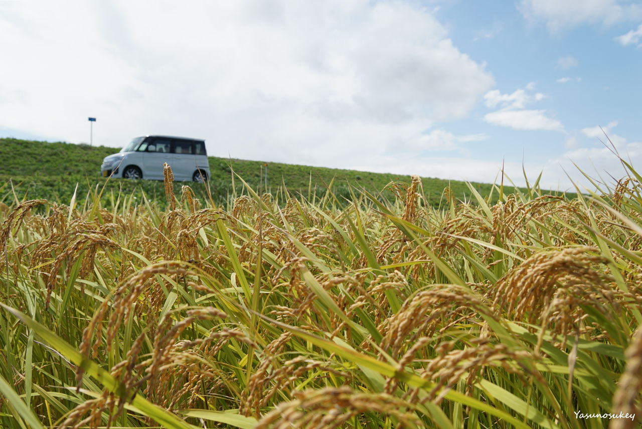 These two photos were taken on September 8, in the northern part of Ibaraki. The rice plants were growing, and paddy fields were changing their colors.