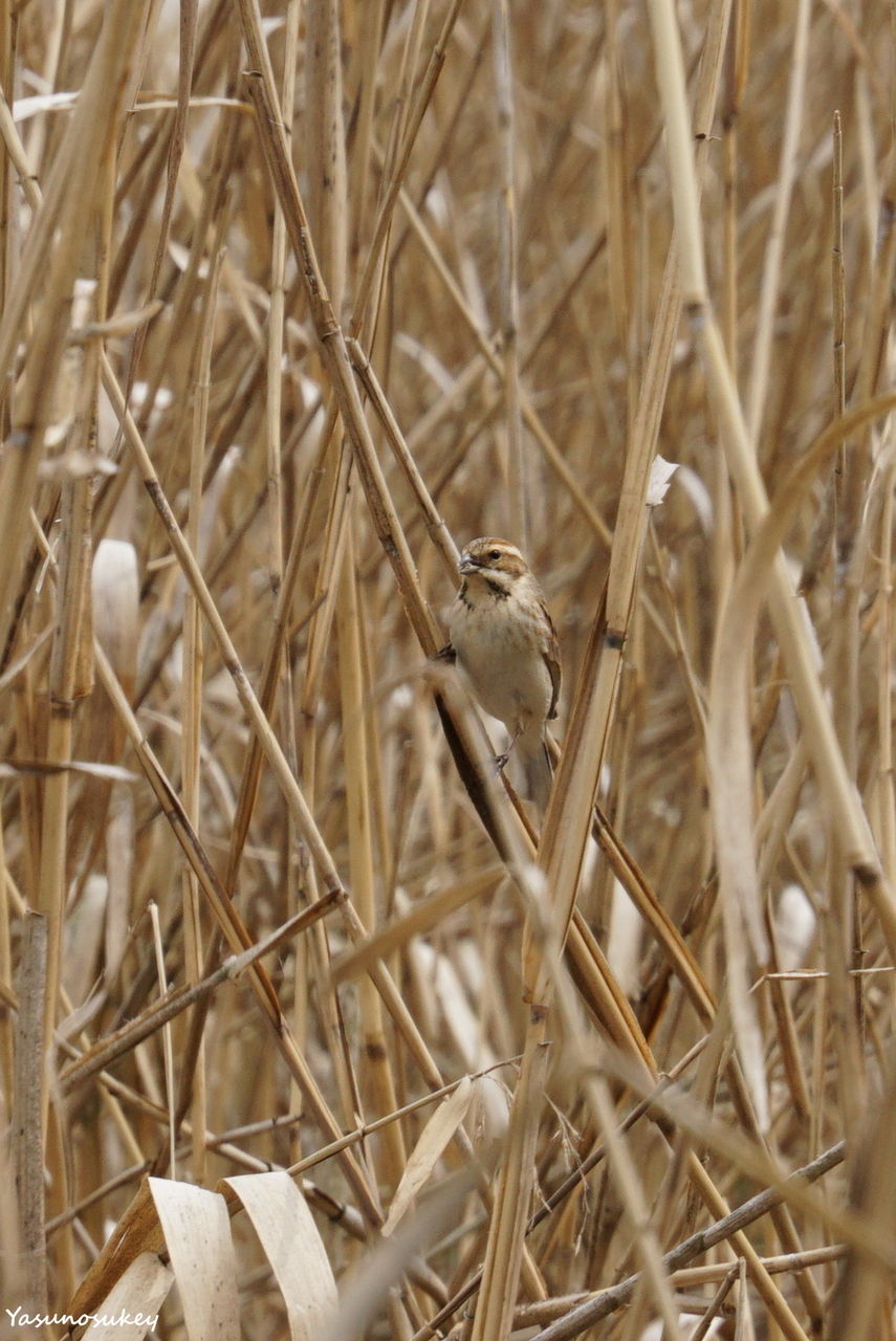 近所の公園で見つけたオオジュリン(?) 保護色で周りの景色にすっかり溶け込んでいる被写体にもピントが合いました。
