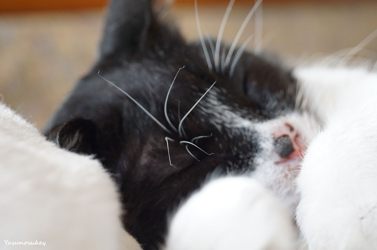 少し離れたところからズームして撮影した愛猫ソラです。ピントが完全に合わなかったことがかえって柔らかな印象の写真になりました。