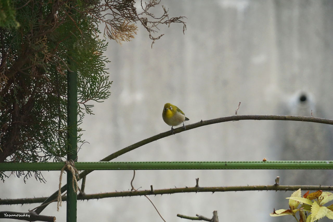 お隣さんの木にとまるメジロ。