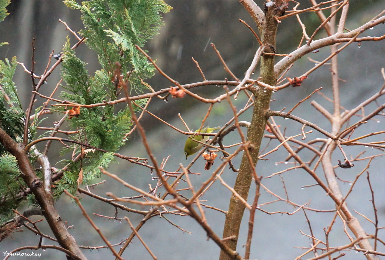 1月。冷たい雨の降る中、メジロがうちにやって来ました。