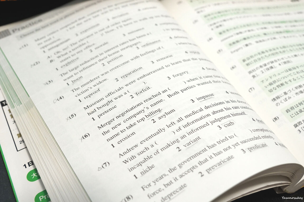 それから、旺文社の「英検1級過去6回全問題集」は役に立ちました。私はこれを4回分解きました。