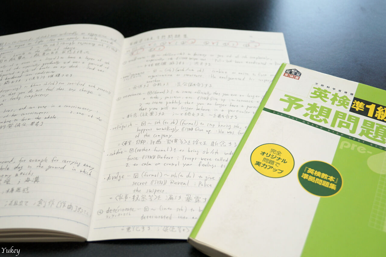 さらに最低でも週5日は机に向かって英検準1級の問題集を解きました。40枚のB5キャンパスノート1冊終わるのに、1ヶ月半くらいのハイペース。