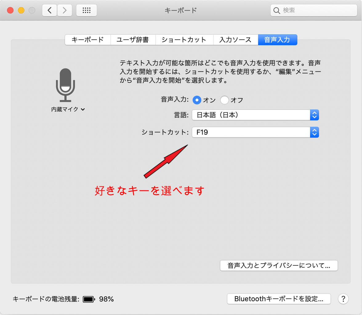 How to set up the shortcut key: Click the “Apple menu” on the top left of the screen > “System Preferences” > "Keyboard" > "Dictation" (tab).