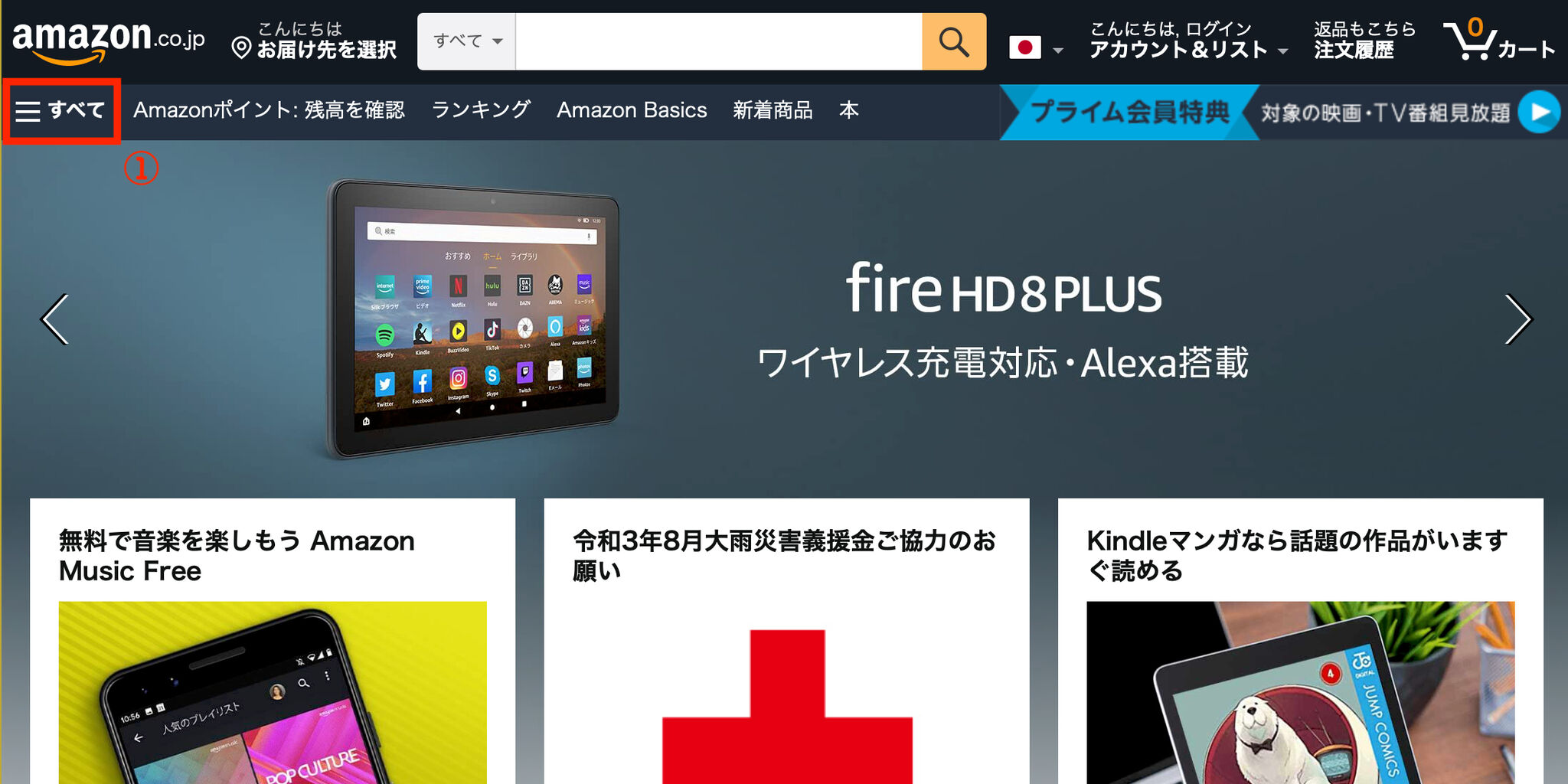 にログインし、トップ画面から、左上の「すべて」をクリック(画像①)。