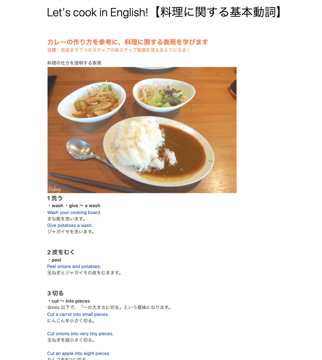 ▲料理を作る手順を、基本動詞だけで言い表すことができるようになるのが目標です。