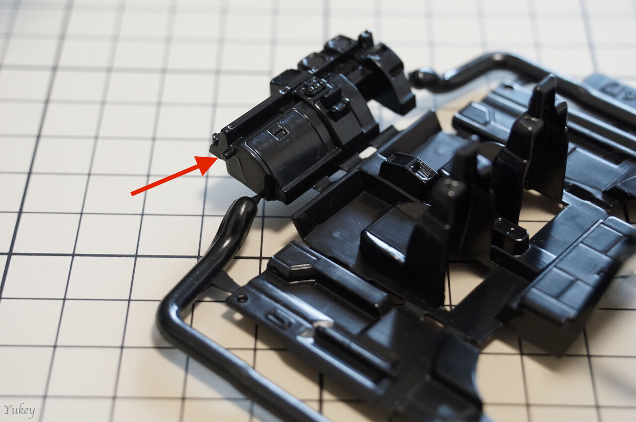 しかし!ジムニーではゲート(=ランナーと部品を繋ぐ部分)がそもそも突起とは別の場所にあり、間違っても切り取ることはないような設計になっています。