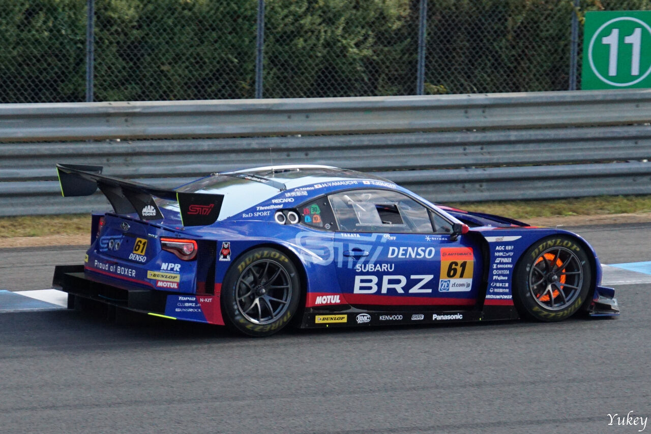 国内最高峰のGTカーレース。Super GTで活躍するBRZ R&D Sportです。ボンネットのダクトの形状、カナードの枚数やテールランプからして、2016年か2017年に参戦していた車両ではないかと思います。