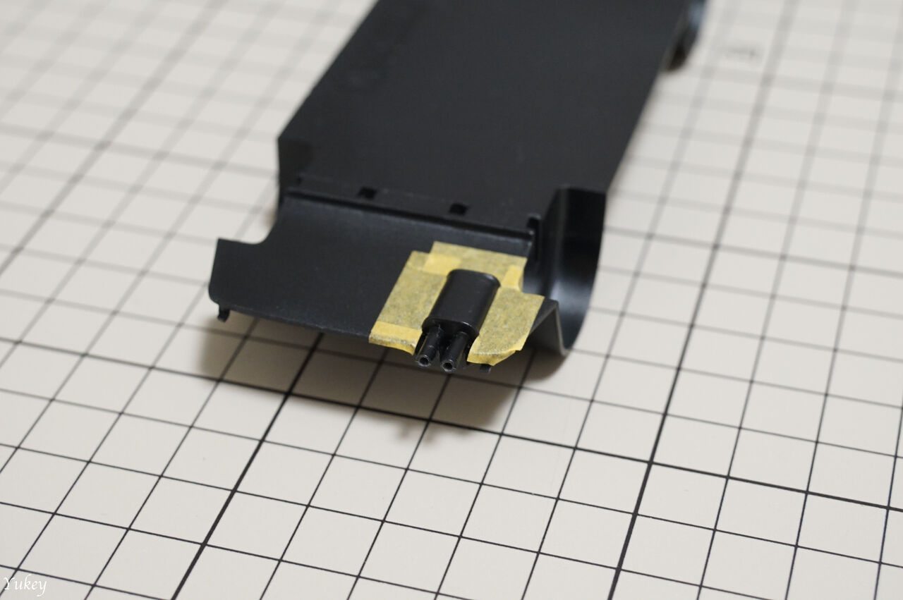 このまま完成としてもよかったのですが、やはりマフラーをディティールアップしたく、穴あけと塗装に入ります。