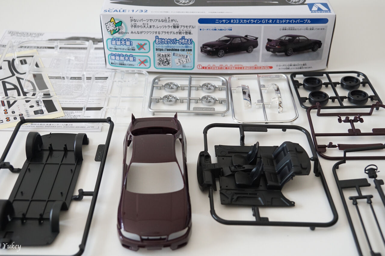 R33 スカイラインGT-Rは部品点数もシールの量も少ないうえに、部品精度が高く、私が今まで組み立てた6台のうち最も組み立てやすかったです。